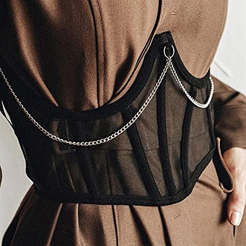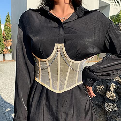 Dames taille korset sexy ketting perspectief mesh shapewear gordel