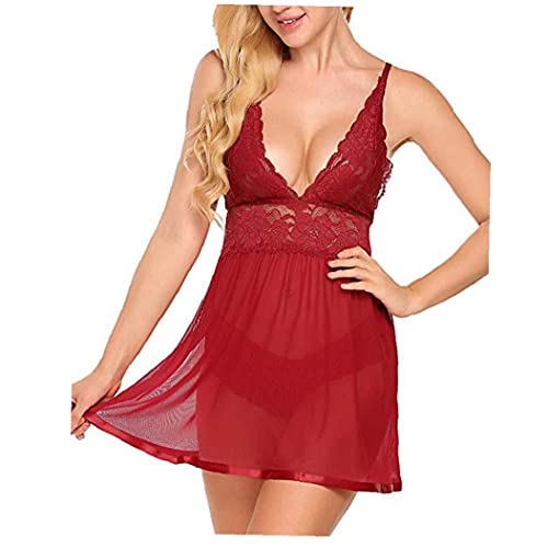 Sexy Vrouwen jurk Lace Transparante Lingerie Dress Mesh Pajamas Lady Halter Nachtkleding Rood M