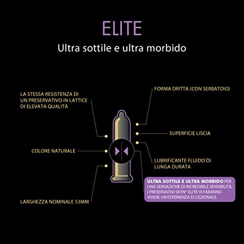 Skyn-condooms bestaan uit Skylynfeel, een innovatief materiaal zonder natuurlijk rubberlatex, dat een ‘huid’ gevoel en een volledig natuurlijk gevoel voor beide partners biedt. Skyn Elite condooms zijn 20% dunner dan originele synn en zijn daardoor nog zachter en comfortabeler voor een nog natuurlijker gevoel. Vanaf vandaag in een 60-delige voorraadverpakking.